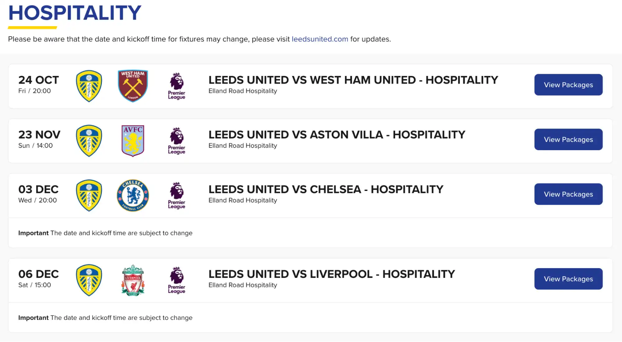 למידע נוסף – כל אפשרויות האירוח לLeeds United.